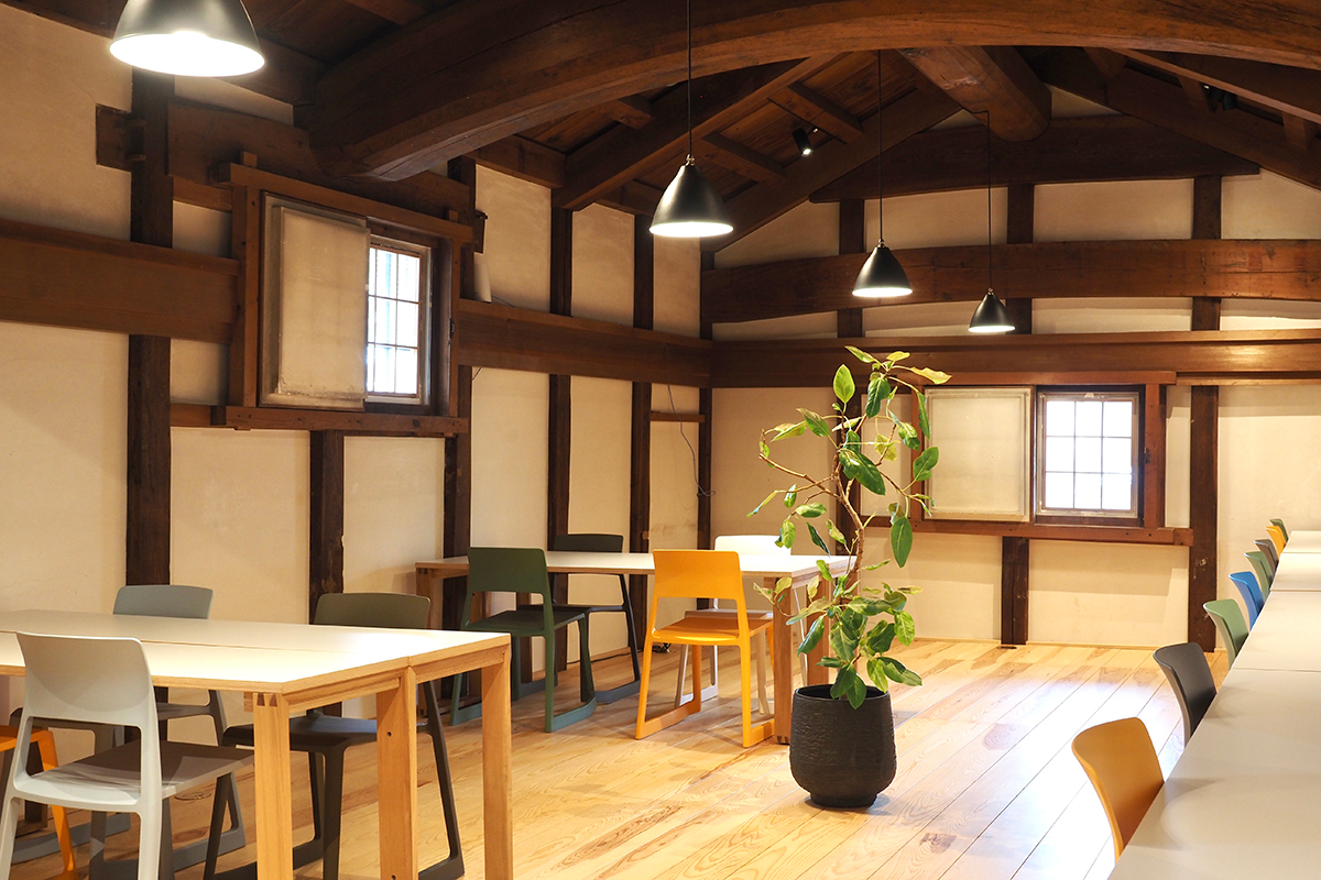 北前船で活躍した商人「古河屋」が、小浜藩(現在の福井県)の藩主や賓客をもてなすために建てた「古河屋別邸」。県指定有形文化財にも指定され、常時公開されていなかった施設を、小浜の老舗箸店「マツ勘」がリノベーション。コワーキングスペースやコーヒースタンド、ミュージアムを併設した施設に改装し、地域の人々が気軽に集える場所となっている。