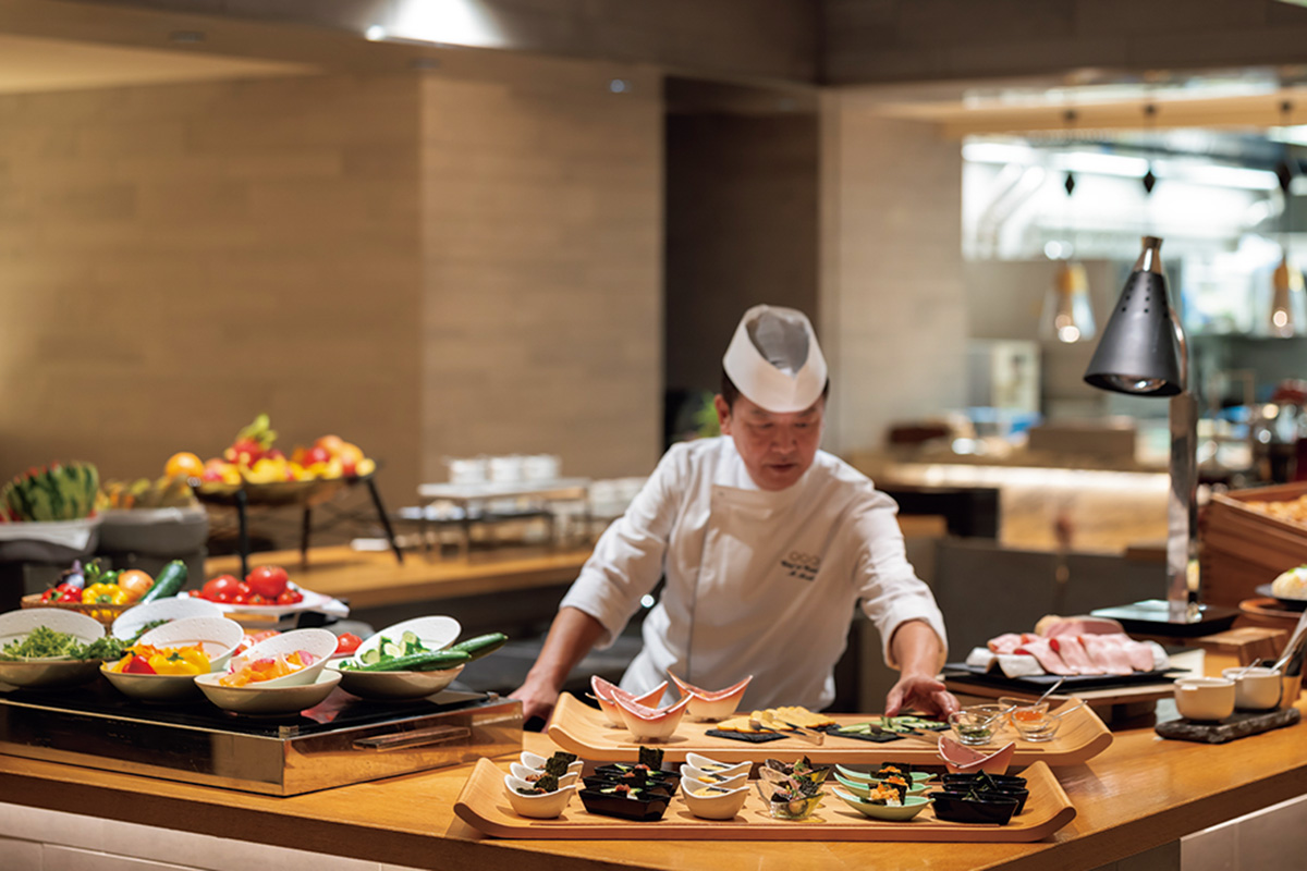 翌朝の楽しみ、朝食はSCALAEでのハーフビュッフェに加えて、日本料理「KIZAHASHI」での京食材ふんだんな和朝食も。各所で上質さに触れるステイに心が満たされるだろう。