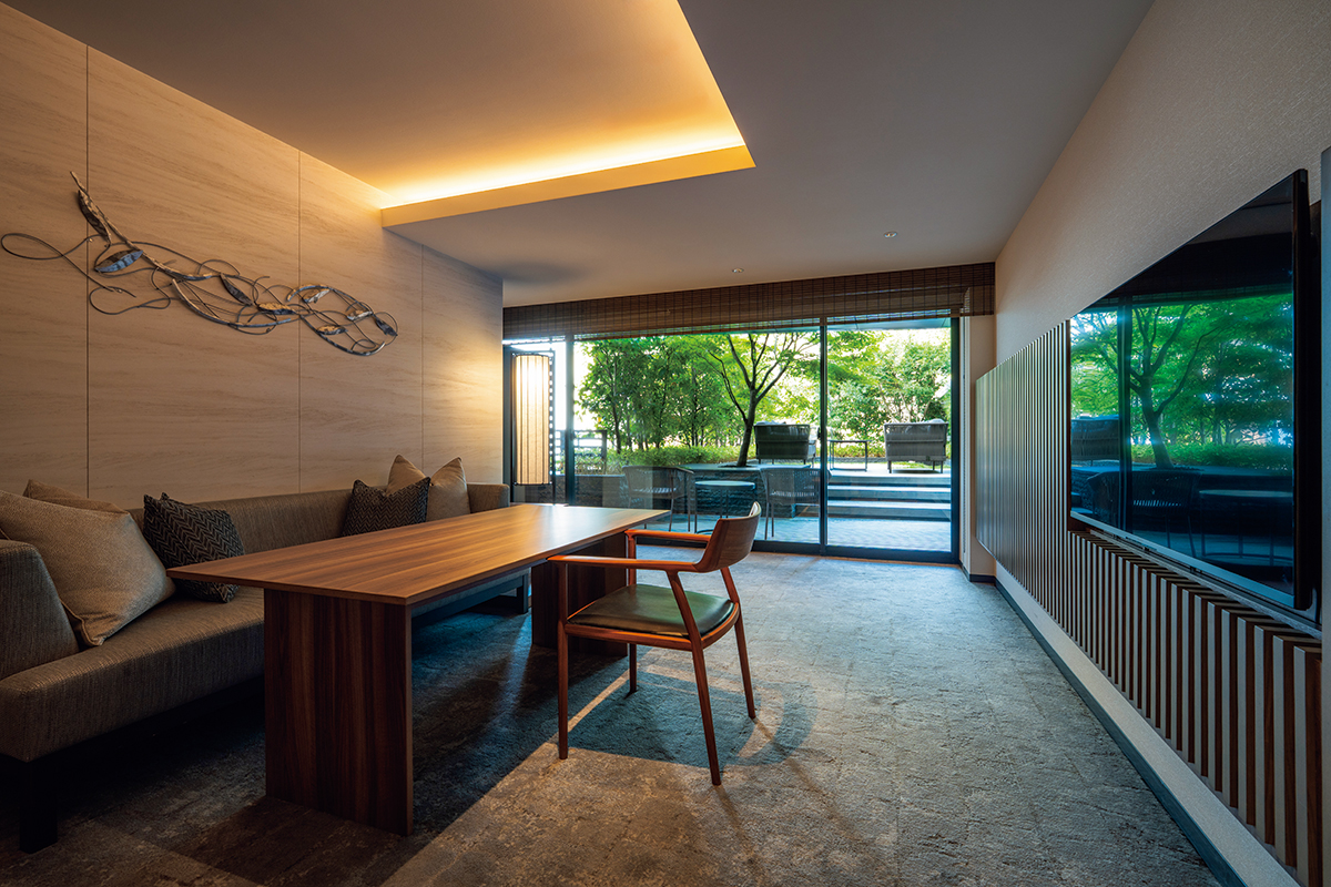 客室は幅広い層のゲストやシーンに寄り添う多彩なタイプを展開する。たとえば「ガーデン・スイート」。緑豊かなガーデンテラスを備え、まるで郊外に佇む邸宅のよう。すがすがしい空気感のテラスで過ごしていると、駅のすぐ近くという立地をしばし忘れてしまう。