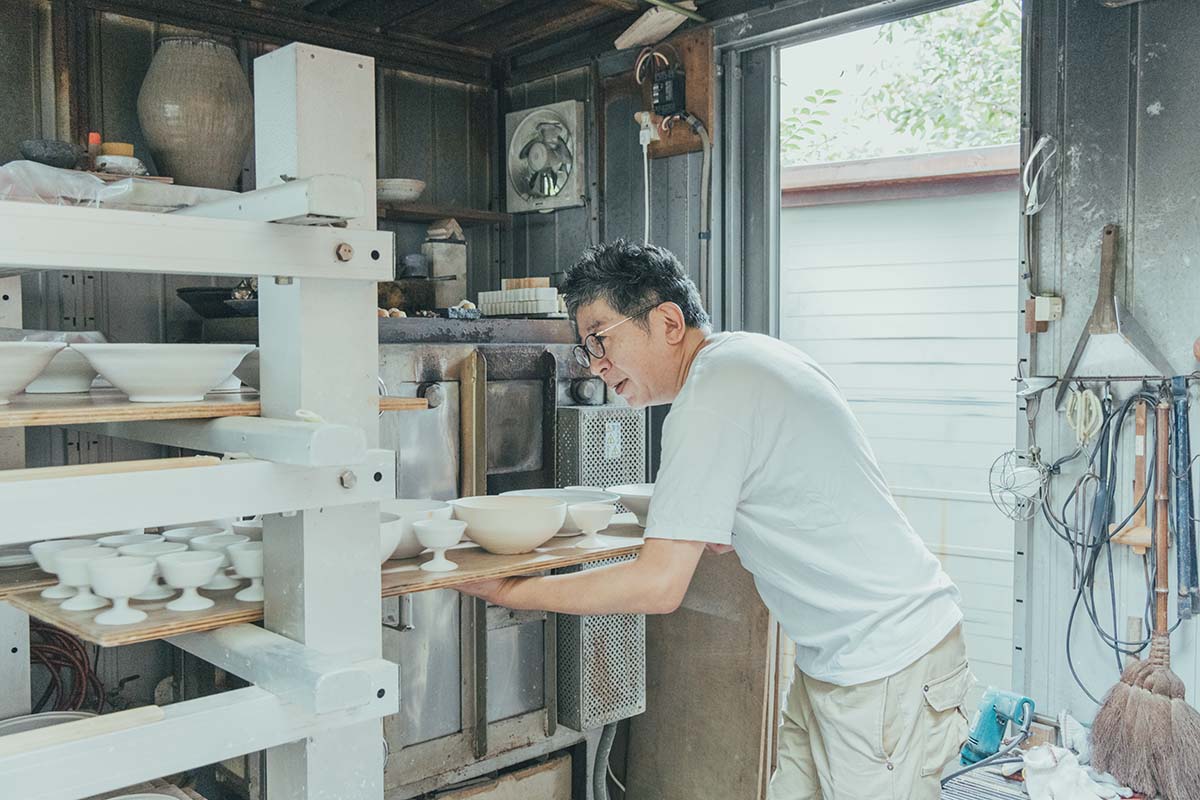 1964年、北海道生まれ。多摩美術大学を卒業後、1994年にうつわの制作を開始。1997年、横浜市に築窯。2001年より鎌倉で、妻のキクタヒロコさんと制作を続ける。白マット、草色、サビ黒など料理が映える色使いも魅力。