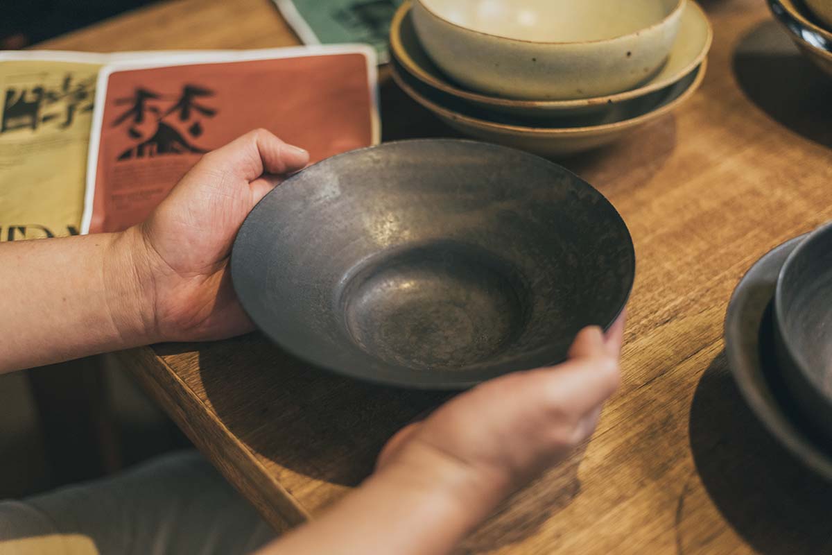 「丼らしくないものがあってもおもしろいかなと思って。食卓に置いたときに、料理を見せられる感じの丼をつくってみたかったんです」