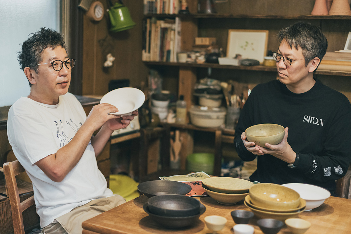 鰹節の燻し分けにより、異なる3種類の出汁パックをセットにした「SIIDA®」(シーダ)。そのSIIDA®の出汁を愉しむためのうつわを陶芸家・アセビマコトさんがつくるというプロジェクトが進行中だ。出汁が3種類あるので、丼、お猪口それぞれ3つのフォルムで、各4色展開。いままさにオリジナルのうつわが完成を迎えようとしているアセビさんの工房を訪ねた。