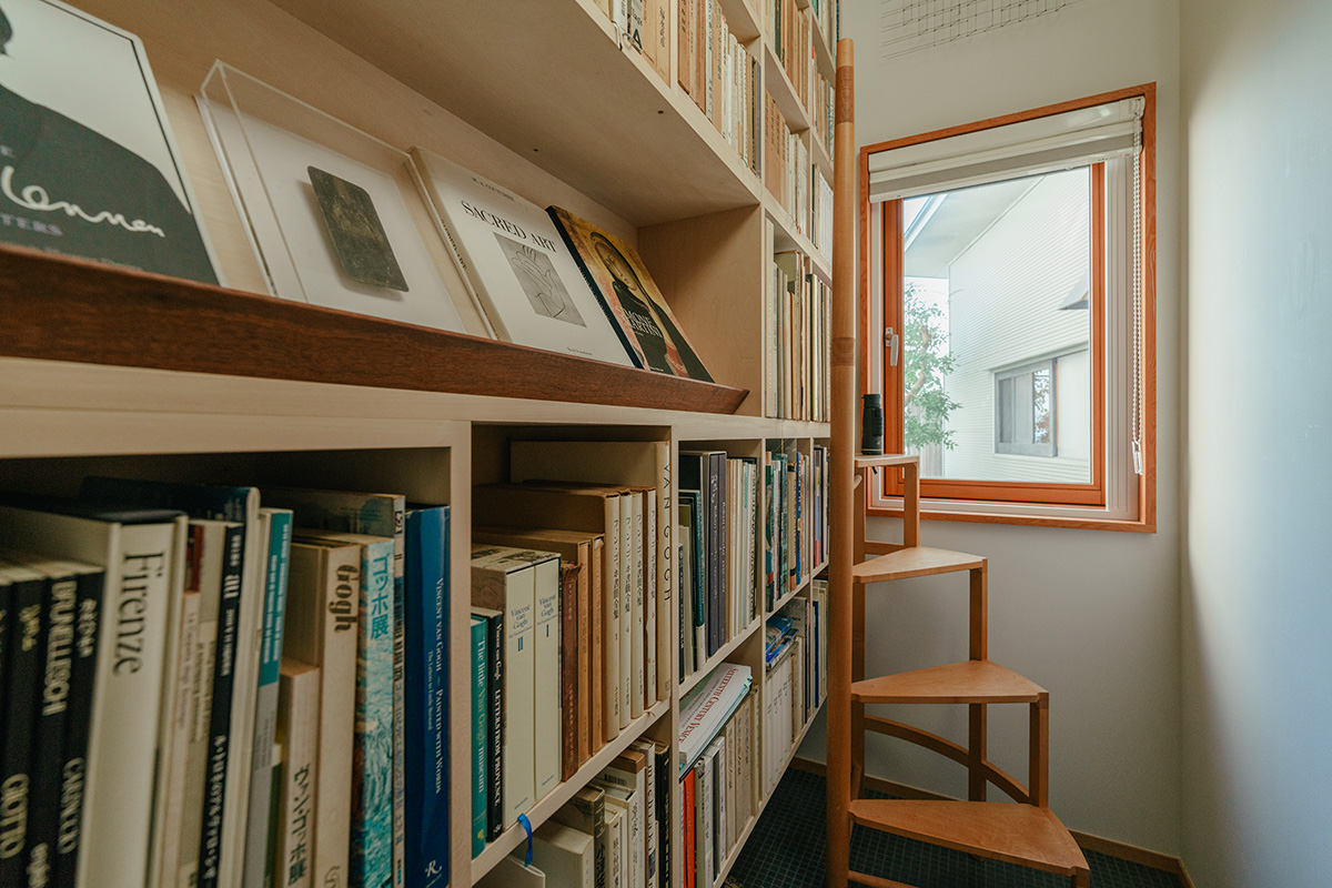 そして、一昨年増築したのが、書庫兼読書室の「CLIFF STACK」。間口2・7m×奥行1・2m×高さ3mの小さな書庫に東京の自宅から移した1000冊ほどの蔵書を収納している。ゴッホの書簡集などの美術書や画集のほかに、小説、エッセイ集など、中村さんの関心のうかがえる分野を越えた愛読書がぎっしり。