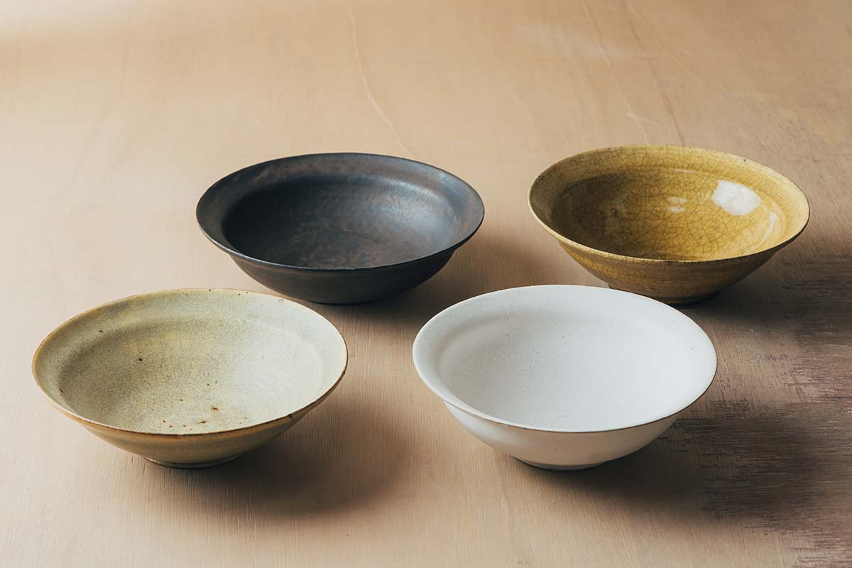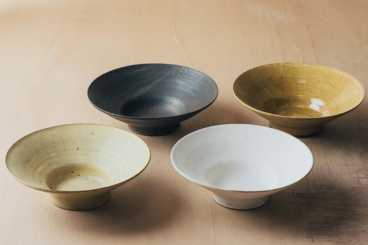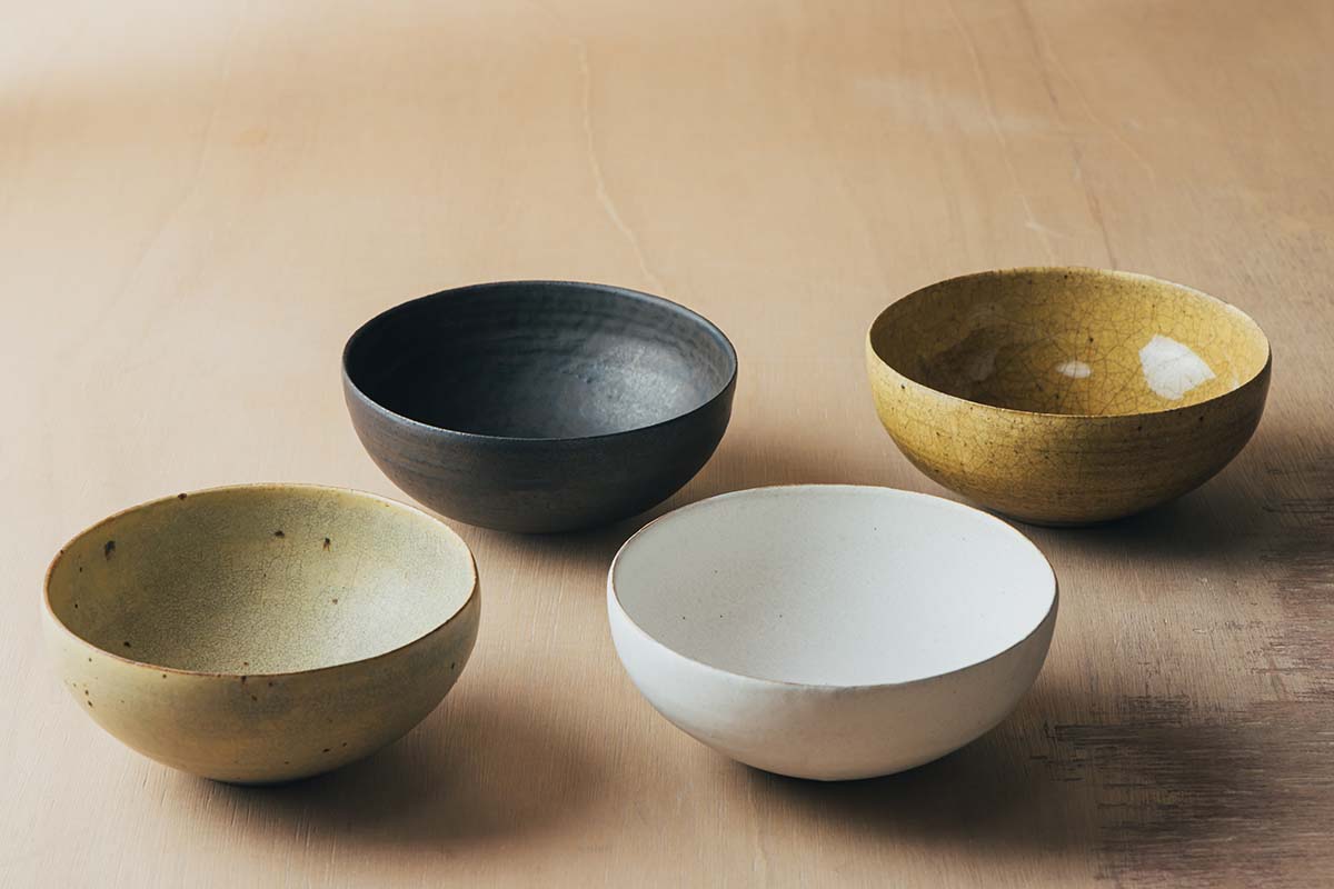 僧侶が托鉢で使う鉢をかたちのベースにした丼。両手で包むと収まりがよい。出汁をたっぷり愉しむ麺類、卵とじ丼などに。各5500円〜