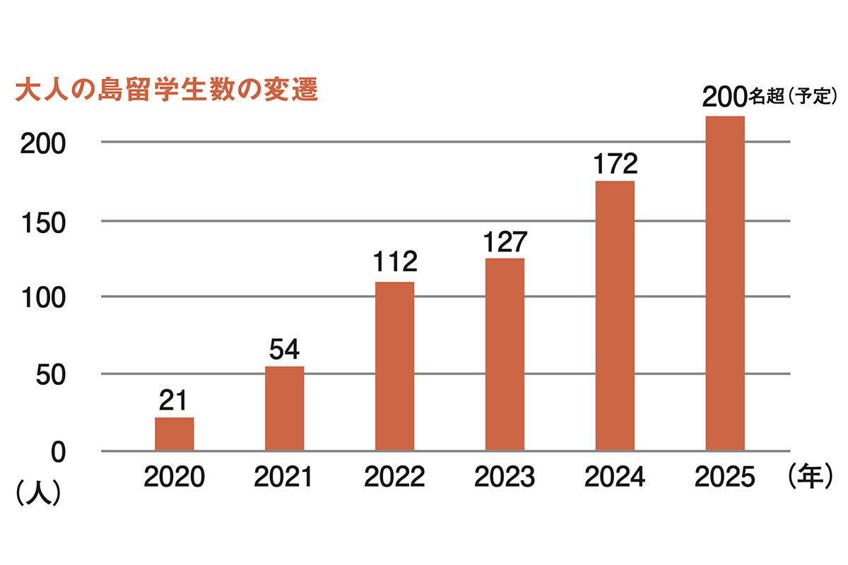 「大人の島留学」は、島根県の隠岐島前地域で暮らし、働くことができる制度。20~29歳向けに、3カ月〜1年の期間、若者を受け入れている。海士町はユネスコの世界ジオパークにも認定された自然豊かな町で、半農半漁の島。来島した若者は自身の想いや、やってみたいこと、島のニーズを重ね合わせ、島で暮らし、働くことにチャレンジする。地域の課題の解決に貢献しようという移住者は年々増え、魅力的で持続可能な海士町の実現を目指す「AMAホールディングス」でも島留学の卒業生が活躍中だ。