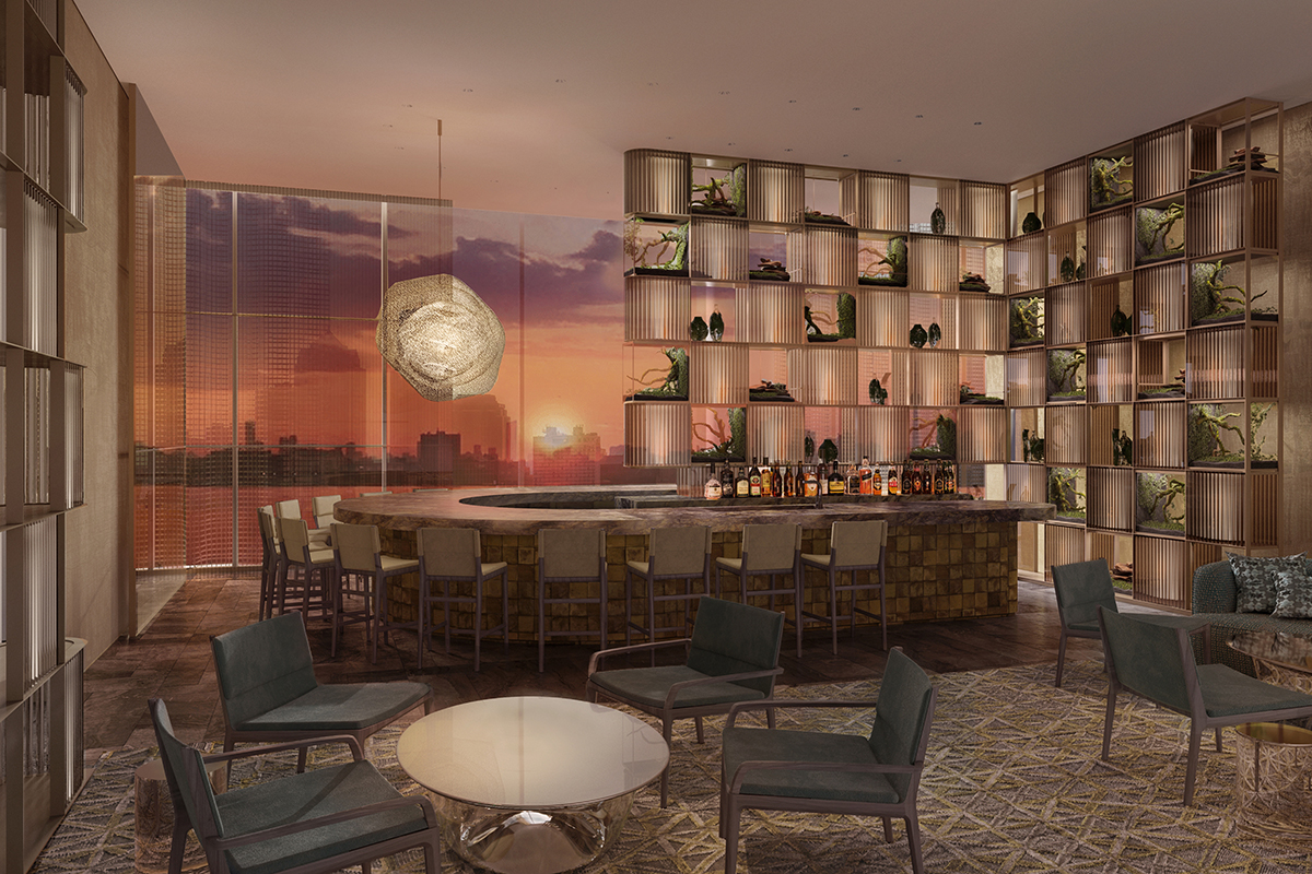 東京・高輪に誕生したラグジュアリーホテル。客室は禅に着想を得た落ち着いた色合いを基調にした繊細でエレガントな空間に。「JW Bar」からはサンセットや東京ならではの景色をオリジナルカクテルとともに愉しめる。