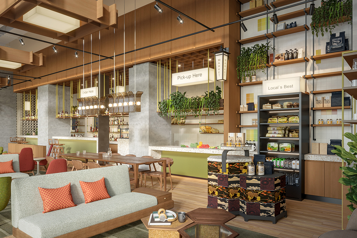 鉄骨と木造を組み合わせたハイブリッド構造を採用した、環境に優しいホテルが誕生。1Fには地域住民も気軽に立ち寄れるTalk Shopがあり、ボリューミーなバーガーや、プロテインたっぷりのサラダなどを気軽に楽しめる。日本橋兜町エリアで、街のリビングルームのような存在となることを目指す。