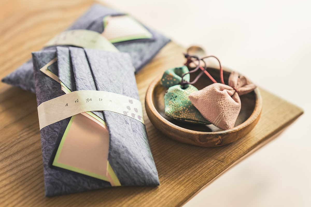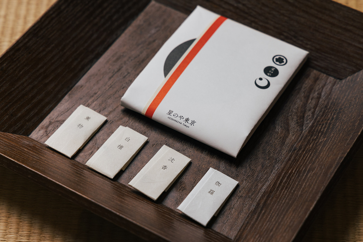 ロビーに一歩足を踏み入れると、檜や北山杉、ユズなど日本由来の和精油を軸とした、ホテルを象徴する香り「シグネチャーセント」が漂う。スパのトリートメント時や、ターンダウン時の香りとともにアロマ調香デザイナーの齋藤智子氏がトータルプロデュースした香りだ。チェックイン時には塗香を使った日常からリゾート滞在への切り替えの演出も。
