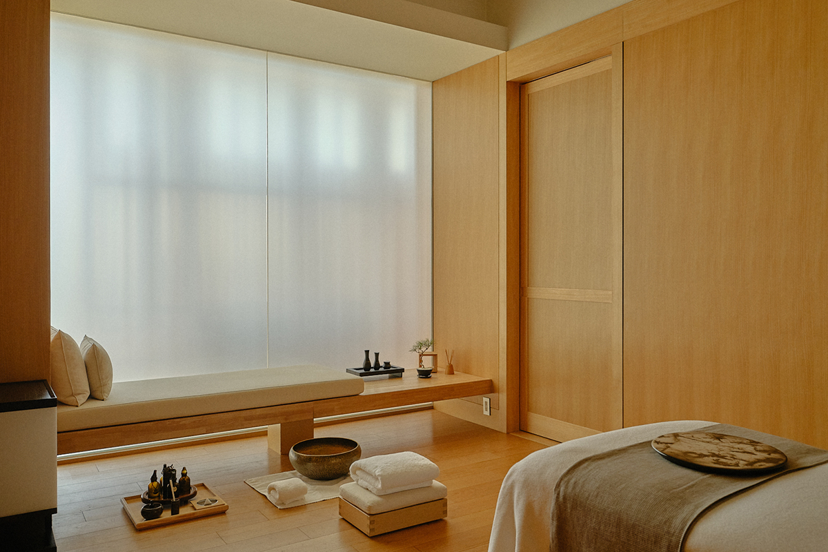 スパでは、クロモジの精油や木くずが配合されたクレイで肌を整えた後、マッサージで身体の血流を促進するメニューも。そのほか、トリートメントではアマンブランド共通の香りに加えて、アマン東京限定のフルーティな香りが特徴的な姫小松のオイルも体験できる。