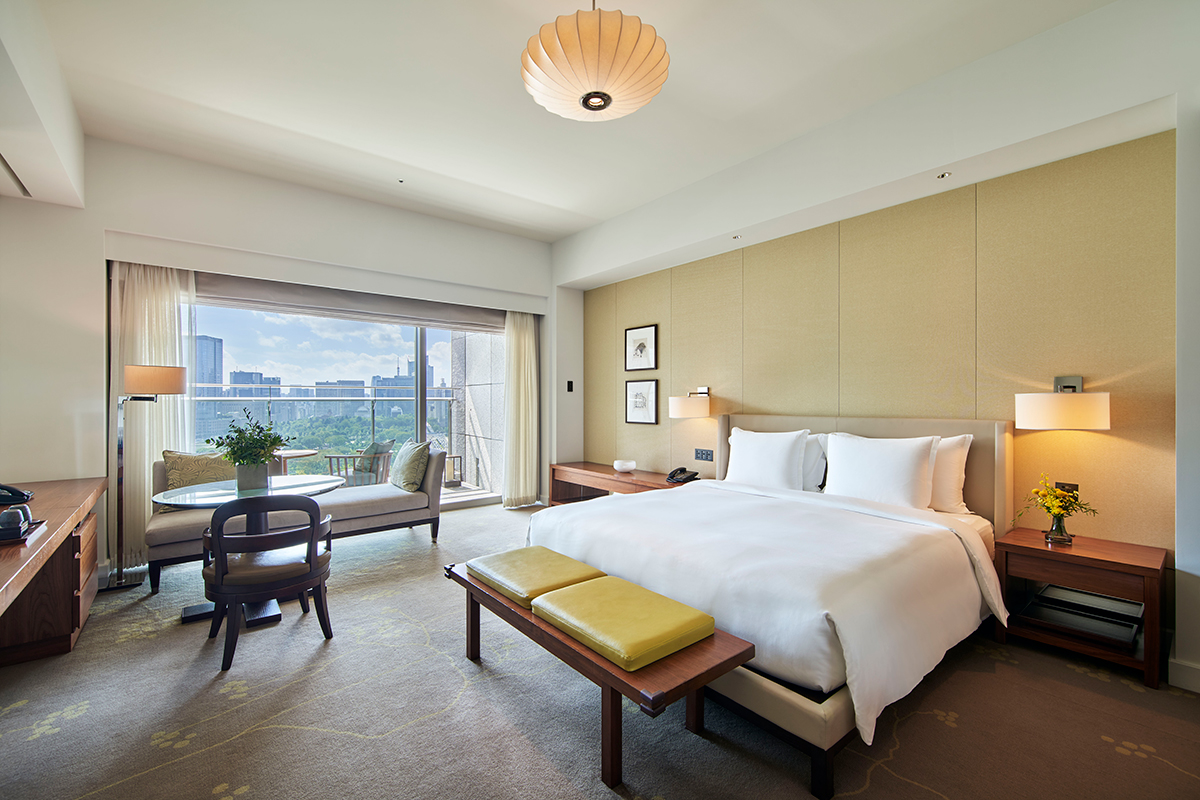 「パレスホテル東京」のロビーでは、透き通るように清らかで静けさを感じるオリジナルフレグランス「Pure Tranquility」が漂う。チェックインして客室に入ると、バスアメニティとバスソルトによる香りのおもてなしが。バスアメニティは英国発の「バンフォード」を採用。厳選されたオーガニック植物を使用したすっきりとした香りで、旅の疲れをリフレッシュできる。