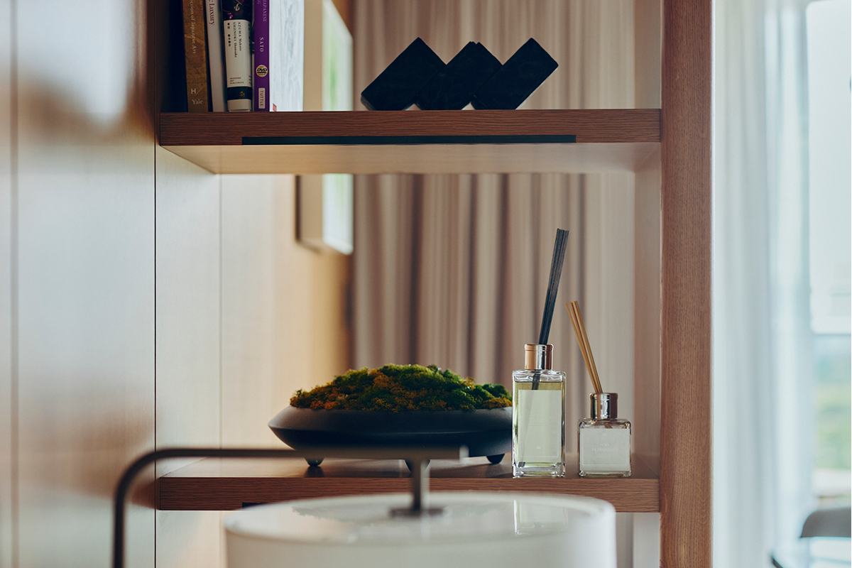 新世代のウェルビーイングを表現する「ウェスティンホテル東京」に足を踏み入れると、世界の全ウェスティンホテル共通のフレグランス「White Tea」の香りに包まれる。その香りは、白茶(ホワイトティー)の茶葉に、杉のウッドチップ、バニラを調合し、さらにムスクで深みと豊かさを加えた、ホテルオリジナル。心を落ち着かせ、柔らかな静けさと幸せな気分を呼び起こしてくれる。