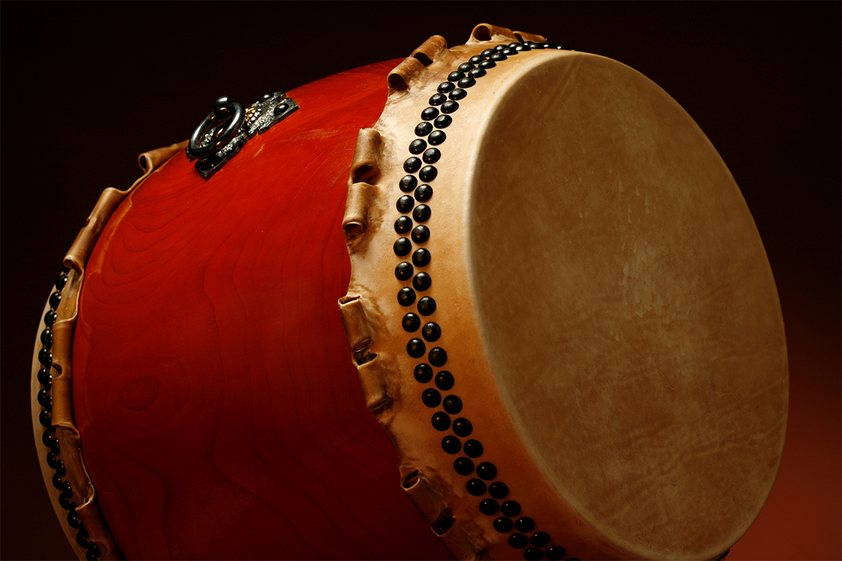 丸太を必要な長さに玉切りにしたケヤキをくり抜いてつくられた和太鼓は、音がよく響き耐久性に優れ木目も美しく、最高級品とされている。