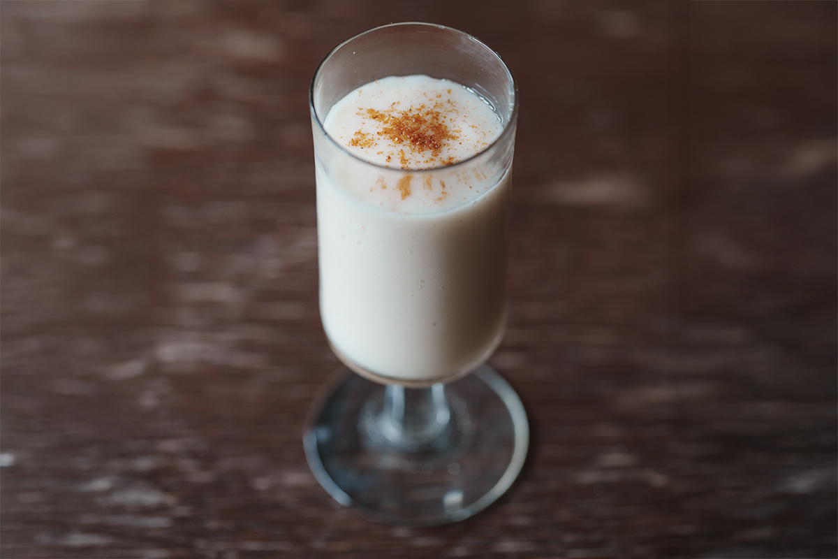 寺本さん手づくりの米麹の甘酒に、粉山椒をトッピング。青山椒はフレッシュな香り、赤山椒はマイルドな辛みがほどよい。甘酒は市販のものでもOK。
