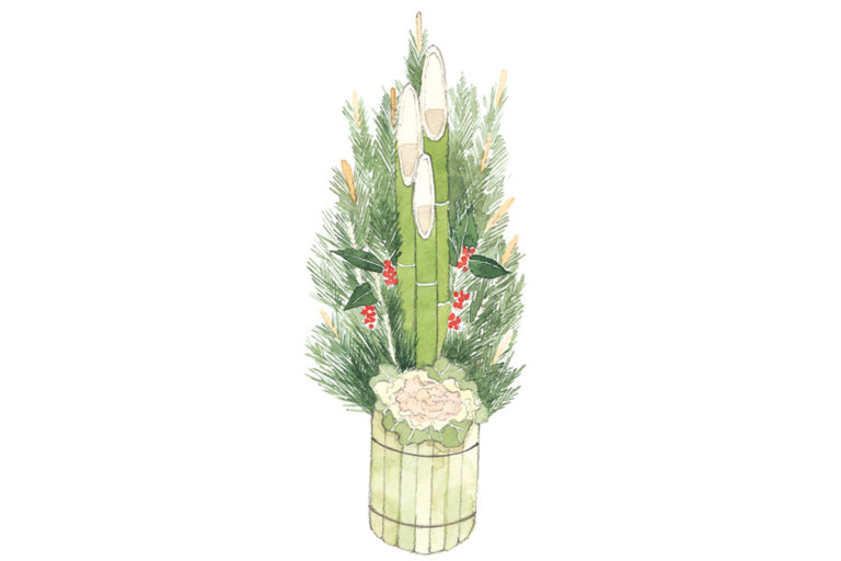 もとをたどると平安時代、お正月に宮中で行われていた「歯固めの儀」に由来する。写真は儀式の供物のひとつ。平丸餅に押鮎、大根など歯ごたえのあるものを噛むことで齢を固め、健康長寿を願いました。この歯固めの儀が形式化されていく過程で、固くなった平丸餅を煮戻して食べた「汁雑煮」が、現在の雑煮の起源。