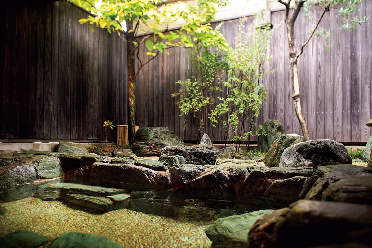 大温泉「浄 Jo」(写真)と中温泉「澄 Cho」はいずれも最大90分の貸し切り制。浄は屋内風呂、豪壮な岩組みの露天風呂に加え、ロウリュが可能なサウナも