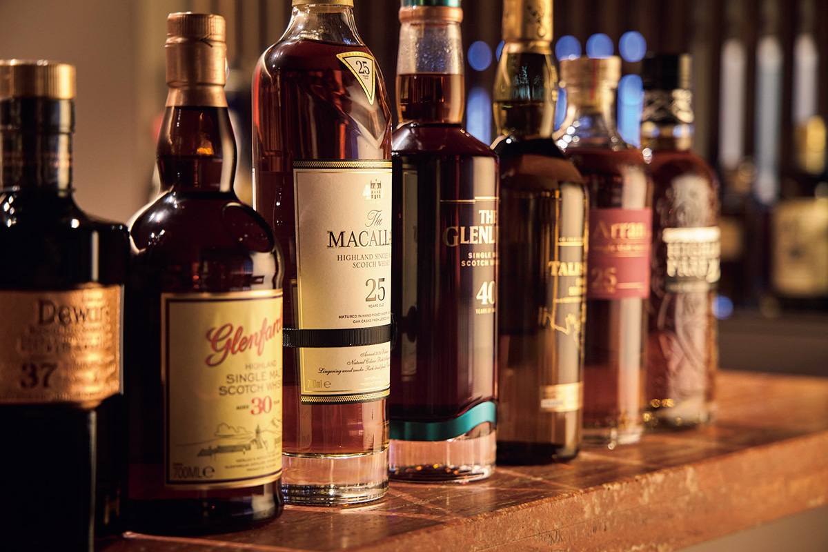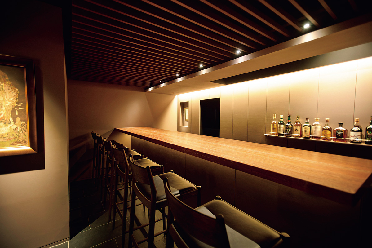 25~40年もののシングルモルトのオールドボトルや限定生産のレアボトルを中心に、約50本のウイスキーが揃う。東京や祇園と比べ、ぐっと抑えた価格で楽しめるのも魅力だ。ソン氏収集のヴィンテージを含め80銘柄を超えるワインも