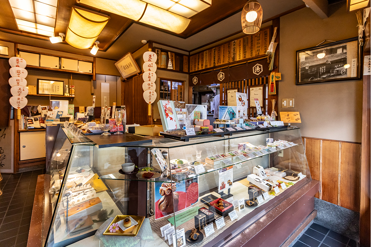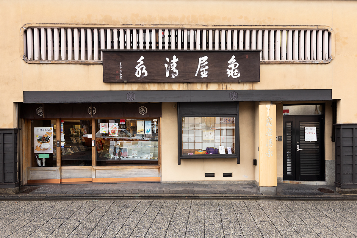 八坂神社前に店を構える「亀屋清永」は、1617(元和3)年に創業した「亀屋冶兵衛」からはじまり、現在17代目が暖簾を守っている老舗。江戸時代の1857(安政4)年、幕府は有職故実にのっとった京菓子を守るため、上菓子司を248軒に制限。さらに天皇や皇室に商品を納めることができる禁裏御用達の上菓子司を28軒に定めた。それらは「京御菓子司」と呼ばれ、亀屋清永もその一軒という長い歴史をもつ。