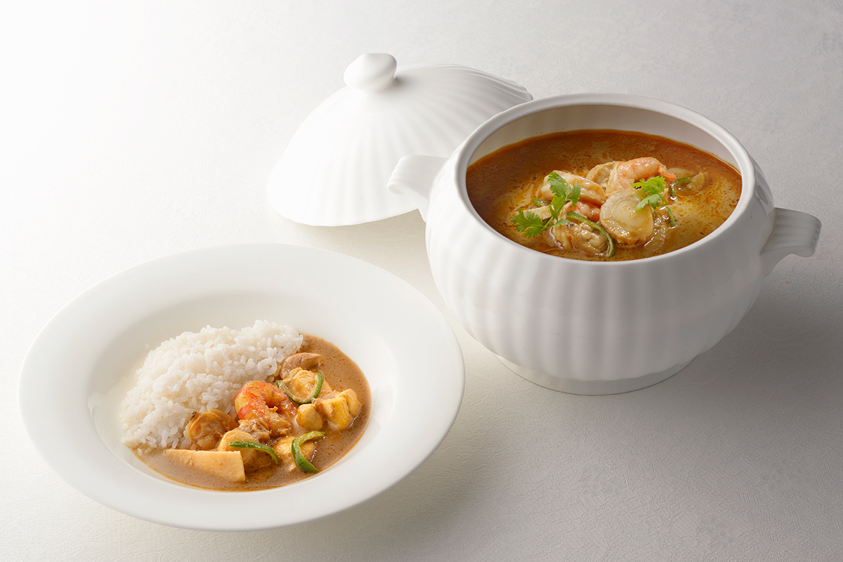 1964年の開館以来、数々の国賓や皇族、政財界人を迎え、「伊勢志摩の迎賓館」として知られている「鳥羽国際ホテル」。その看板メニューのひとつが「海の幸 タイ国風カレー」だ。半世紀前に、タイのホテルの料理長直伝のレシピをベースに開発。日本人向けに辛さ控えめに仕上げ、変わらぬ製法を守り続けている。