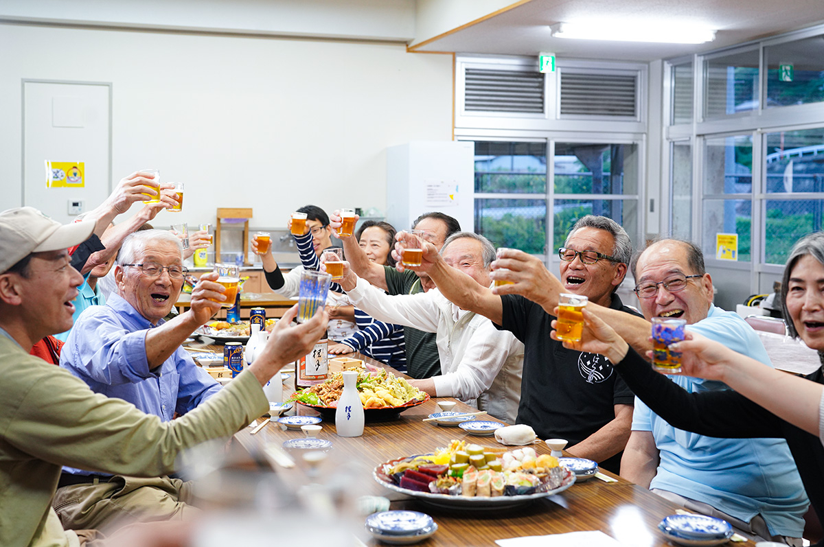 より日常の目線で「おきゃく」を体感できるスポットも。場所は四国の中央に位置する土佐町。元小学校の建物を生かしたコミュニティセンターで、地域住民に迎えられての宴会がかなう。