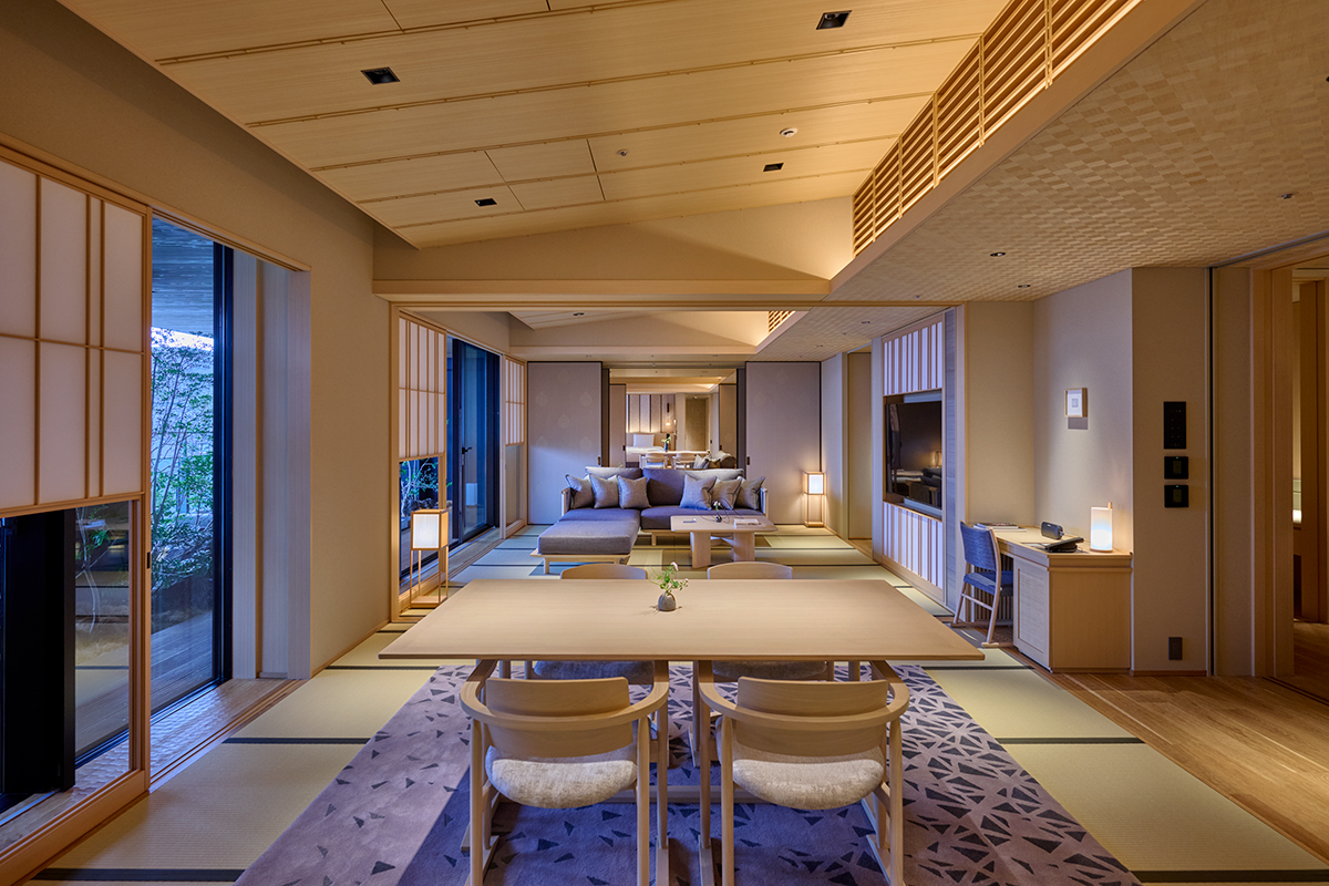 客室数は全34室。すべての客室がゆったりと贅沢につくられ、ダイニングスペースをしつらえて部屋食のできる客室があるなど、それぞれ異なるデザインが施されている。「ふふ」の熱心なファンである“ふふラバーズ”にとっては言うまでもないが、日本全国に展開されるいずれの「ふふ」の“一室とて同じ空間はない”という定義がここ銀座でも貫かれた。