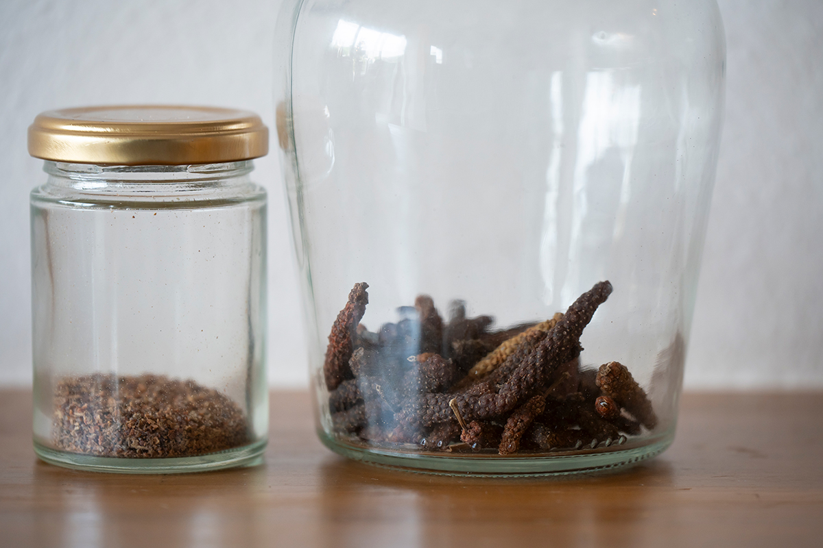 「ピパーチは山では見ないので、自生植物とは考えにくい。琉球王国が東南アジアや中国、日本、朝鮮との交易で繁栄した大交易時代に、インドネシアあたりから持ち帰ったという説が有力なようです。ピパーチには身体を温めて新陳代謝を促すなどの薬効があり、アーユルヴェーダといった伝統療法でも取り入れられる香辛料なので、貿易でも重宝されたのではないかと思います。稀少性も、幻のスパイスと呼ばれたゆえんかもしれませんね」と語る。