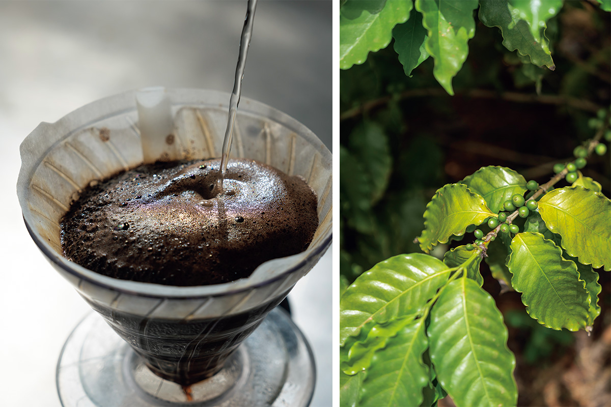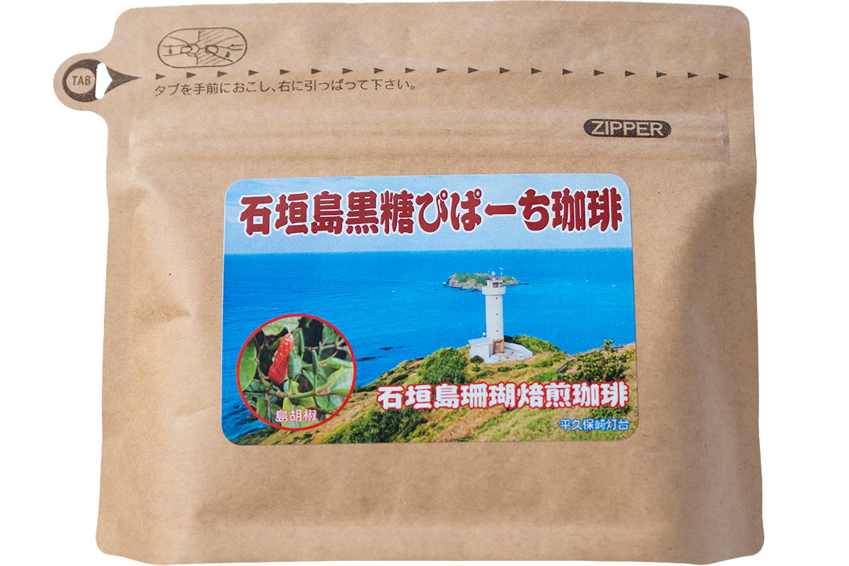 実はピパーチはコーヒーとも相性がいい。38年前にハワイから持ち帰った種を元に、島で三代にわたってコーヒー栽培に励む「丸俊商会」には、ピパーチで風味をつけたコーヒーがある。石垣島産コーヒーの栽培から焙煎、販売までを一貫して手掛け、「石垣島珊瑚焙煎」という化石サンゴを使った独自の焙煎技術が特徴のコーヒー豆に仕上げている。