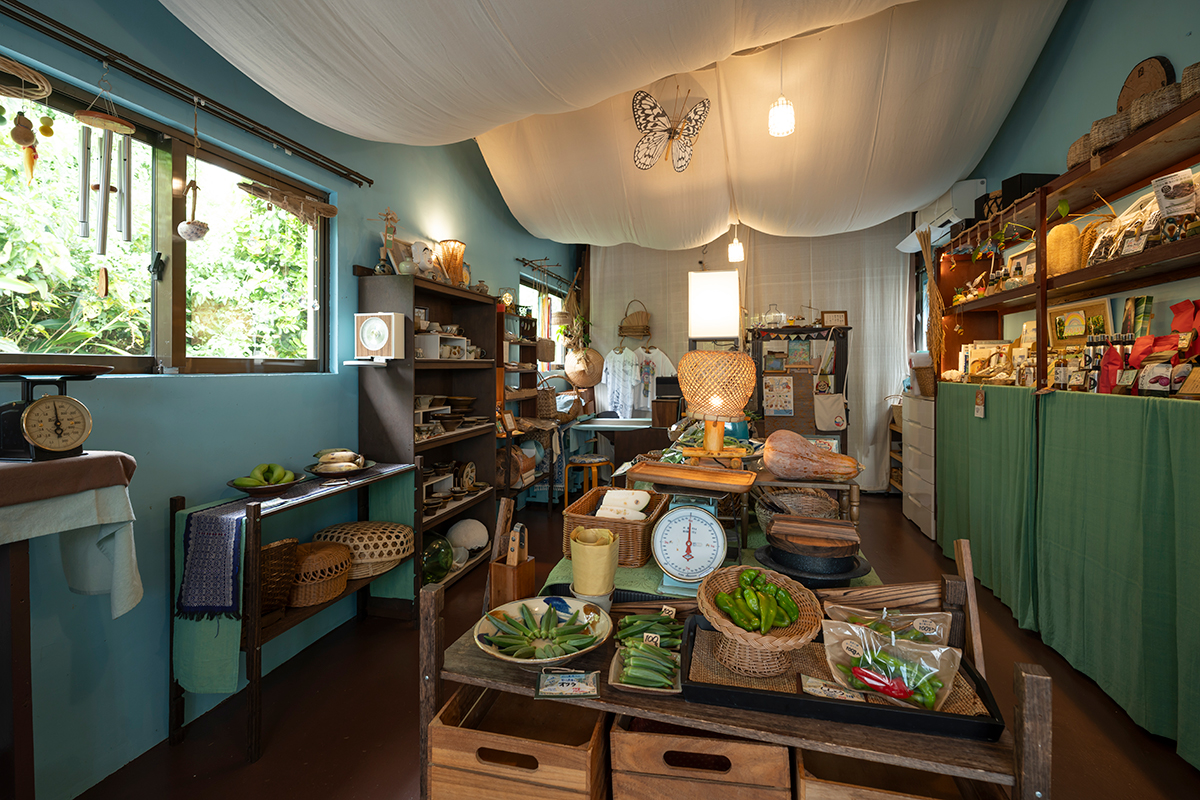 「生産者の想いと美しい島の風景を伝えること」という思いを胸にスタートしたセレクトショップ。店主の俵真理子さんが八重山各地に足を運び、生産者と触れ合って、島の野菜や加工品、民藝、工芸品など、こだわりの品が揃う。「高齢化する農家さんや島の貴重な食材についての現状などについても説明させていただいています」。八重山の食、手仕事の魅力や課題も含めた話も聞ける、八重山への愛にあふれた店だ。