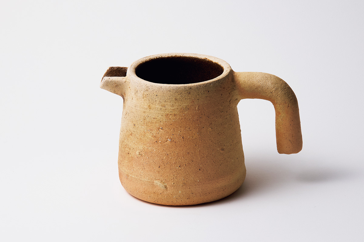 白唐津に耐熱粘土を混ぜ、素朴な土の風合いと高い耐火性を両立。持ち手部分は中空になっており、火にかけても熱くならない。