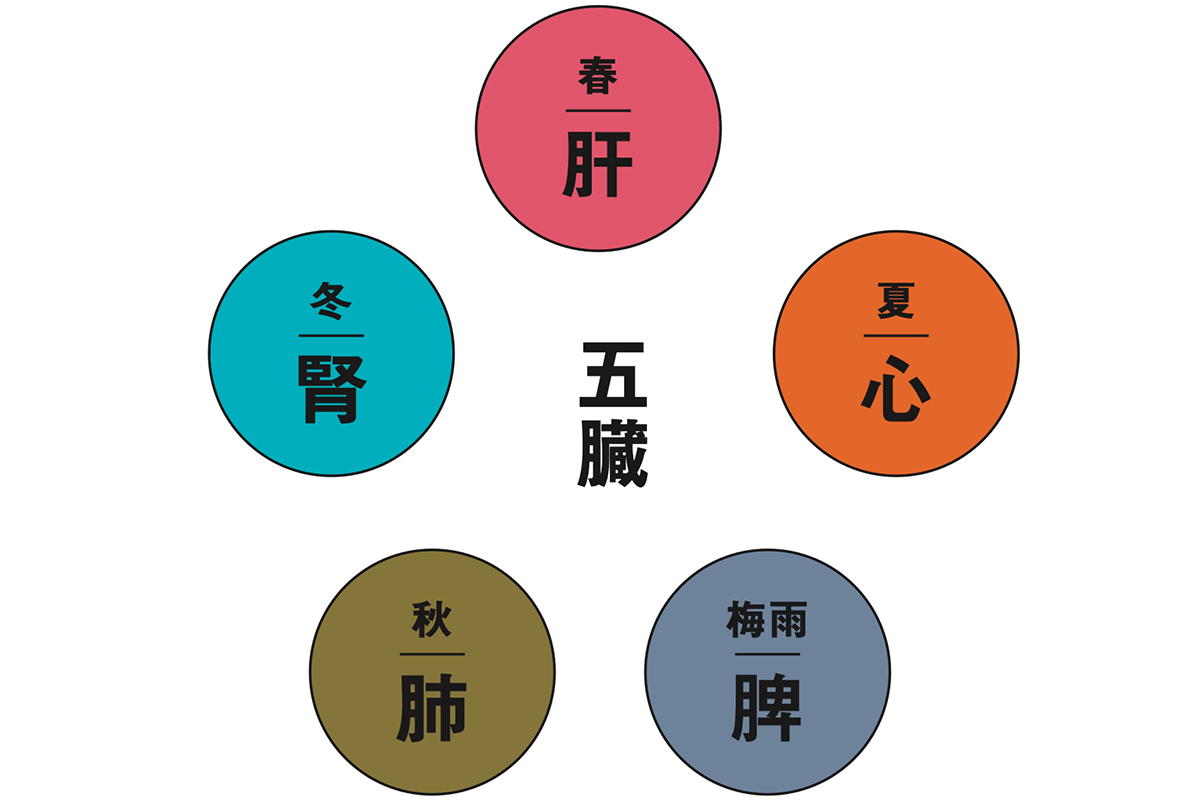 薬膳とは中国伝統医学の理論に基づき、季節や個人の体質・体調に合わせて食材を選び、健康維持、不調の改善などを目的につくる料理のこと。中国には「食養生」、「薬食同源」といった言葉があり、「食材には薬のように身体を養う効果がある」と考えられてきた。身体を温めたり冷やしたりする食材の性質を5つに分類した「五性」(熱、温、平、涼、寒)から、5つの味である「五味」(酸、甘、辛、苦、鹹)を導く。そして春夏秋冬の食材と「五臓」(肝=春、心=夏、脾=梅雨、肺=秋、腎=冬)を対応させ、日々を健やかに過ごそうというものだ。