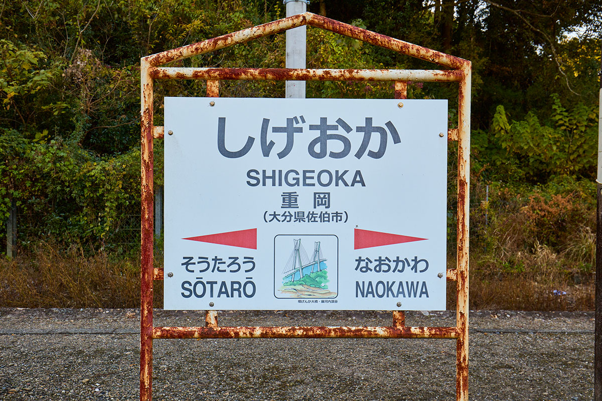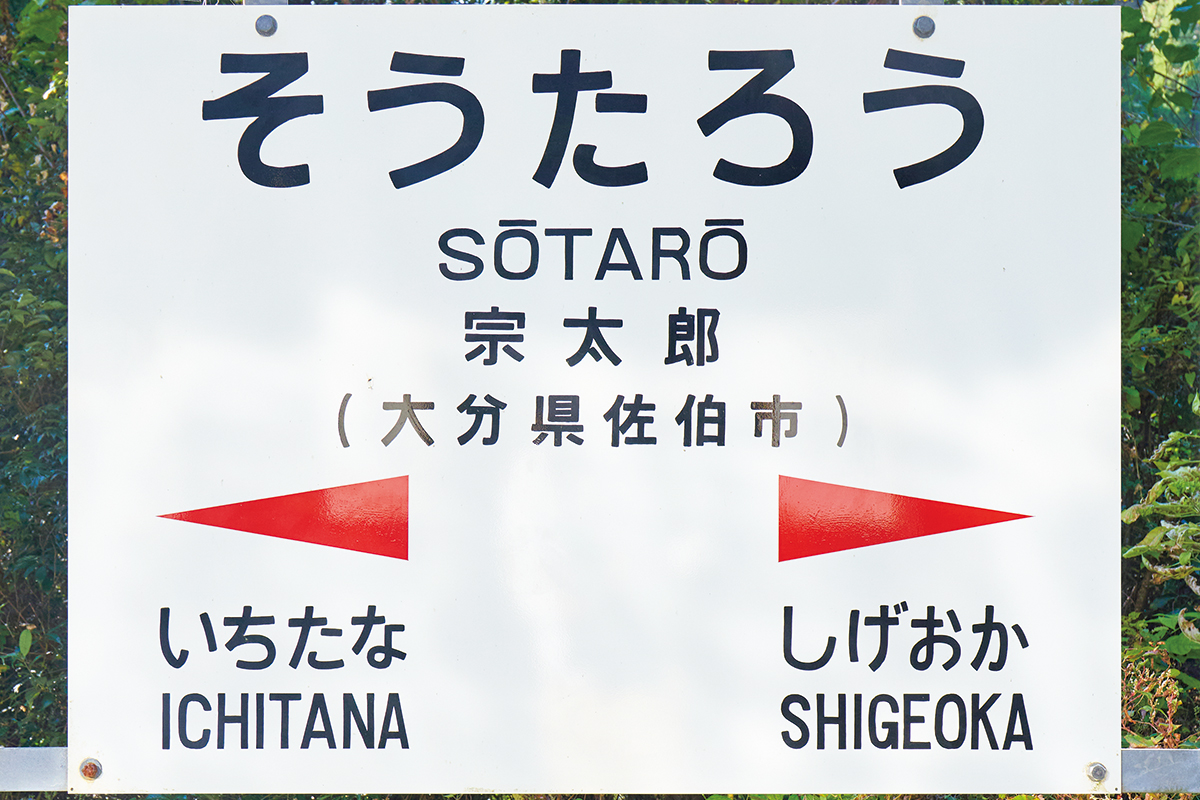 1日3本しか停車しない無人の宗太郎駅。鉄道ファンからは、九州で有名な秘境駅のひとつとして知られる。山深い緑に囲まれた深呼吸したくなるような場所だ。約10分散策ができる。