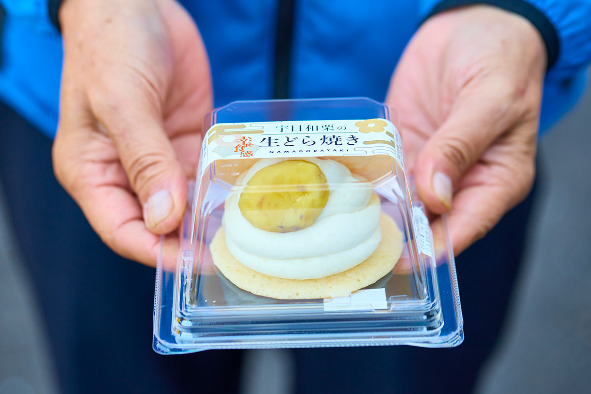 重岡駅では、宇目の名物を地域の人と会話しながら購入できる。「和栗のジャム(レモン、洋酒、バター)や生どら焼きを味わって」と軸丸さん。
