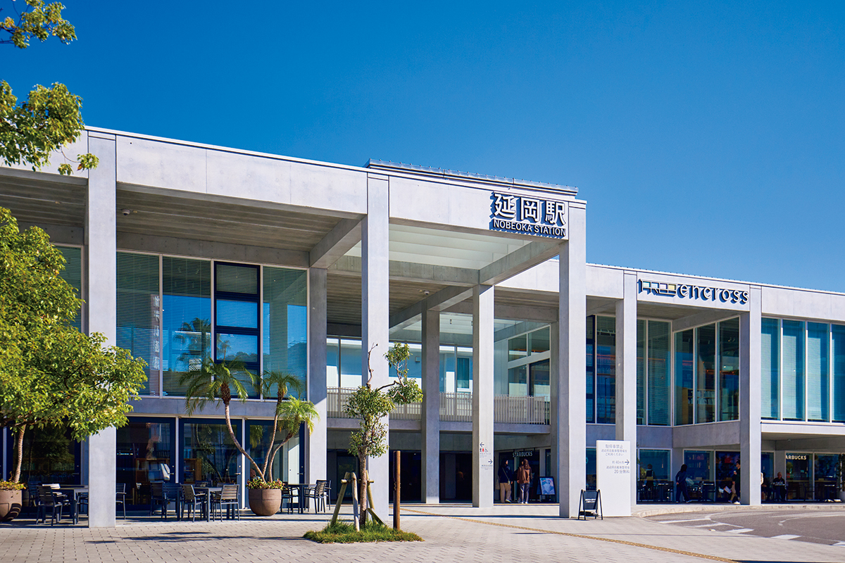 カフェ・書店・イベントで賑わいを生み出す延岡駅直結の施設「エンクロス」。ホームでは、蔦屋書店 延岡エンクロス店がセレクトした破れ饅頭やのべおか茶などの延岡名物を販売。