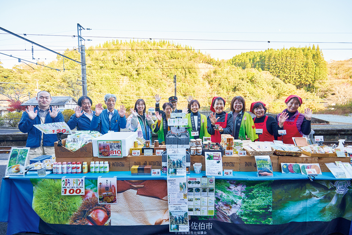 もうひとつの魅力が、途中で停車して地域の人と触れ合う「おもてなし駅」だ。宮崎を抜けて大分の山間にある重岡駅では、ホームで地域の名物を販売しており大賑わい。おもてなしに携わる「観光まちづくり佐伯」の軸丸綾香さんは、「宇目の名産・和栗のジャムやどら焼きなど、地域が誇る『窓の外に見える緑の味』を並べています」と話す。