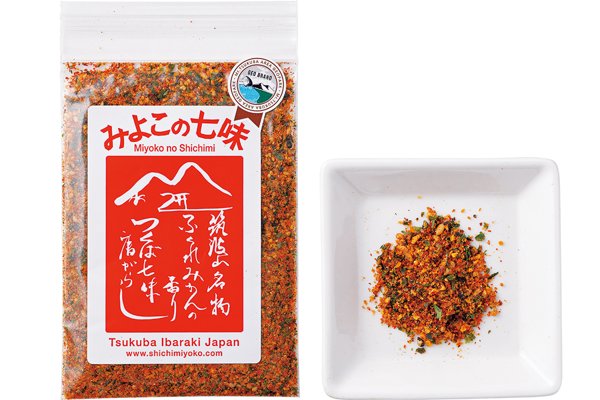 「七味で重要なのは陳皮だと思うのですが、こちらはそれが力強くていいですね」。その秘密が筑波山地区の福来みかん。不老長寿の実として大切に受け継がれ、昔からこの皮を煎じて七味唐辛子にしていたそうで、その文化を継いで誕生したもの。