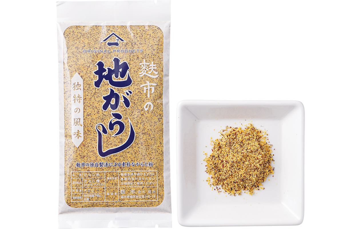 からし種を脱脂せずにまるごと粗挽きするため、粉に茶色と黄色の粒がある。「お湯で練って、しばらく置くと苦みがコクになります。からし和えや酢味噌に」