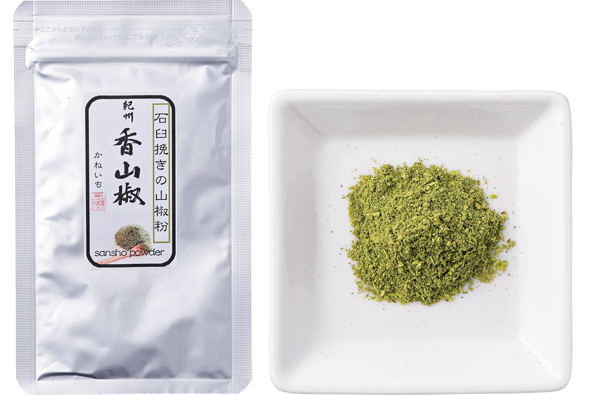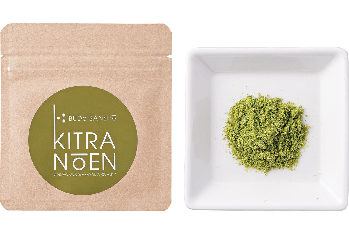 日本有数の山椒の生産地・和歌山県有田川町。高野山のふもと、弘法大師が祈祷をして開いたという「祈祷田(きとうだ)」が転じて「きとら」となった地で営む山椒農園。「こちらの粉山椒は鮮烈なグリーン系の香りが特徴です。焼いた鶏肉にかけています」