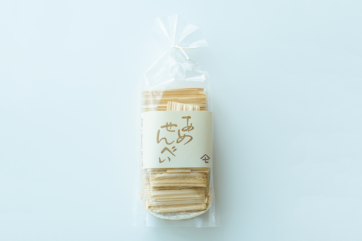 また、松本は飴の産地であり、毎年1月には「あめ市」が開催。縁起物の飴を買いに、多くの人が集まる年始の風物詩として人気です。お土産を購入するなら、1796(寛政8)年創業の老舗「飯田屋飴店」がおすすめ。中でも「あめせんべい」は、もはや食べる民藝です。薄くて四角い煎餅風の形態ですが、実はストロー状に中が空洞になった直径1~2㎜の飴が寄り集まって四角形を成しています。これは空気を含ませて練った飴を職人が二人がかりで呼吸を合わせて引き伸ばすことでつくられているそう。まさに手技がつくり出す美味しさ。沖縄黒糖の風味を感じるサクサクした歯触りは唯一無二です。