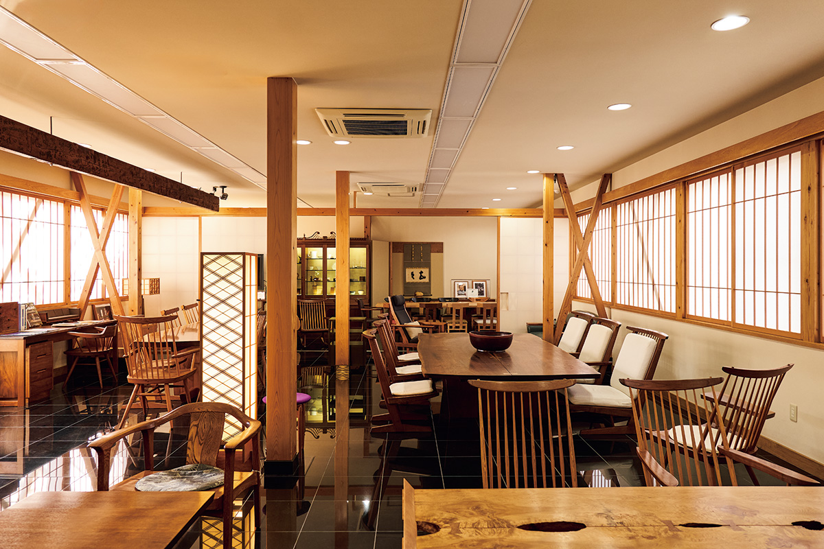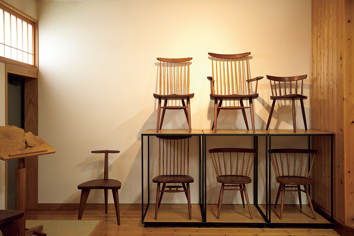 注文家具やジョージ・ナカシマの家具を製作する、桜製作所の工房に隣接する「ジョージ ナカシマ記念館」。2階展示室にはジョージ・ナカシマがはじめて手掛けた椅子や日米でつくられた家具、代表作『コノイドチェア』シリーズなど約60点の作品群がズラリと並び、1階のカフェではナカシマの家具で寛ぐことができる。木を愛し、自らを「ウッドワーカー(木匠)」と呼んだジョージ・ナカシマ。彼の作品を通じ、彼の生き方やものづくりの考え方を広く届けている。