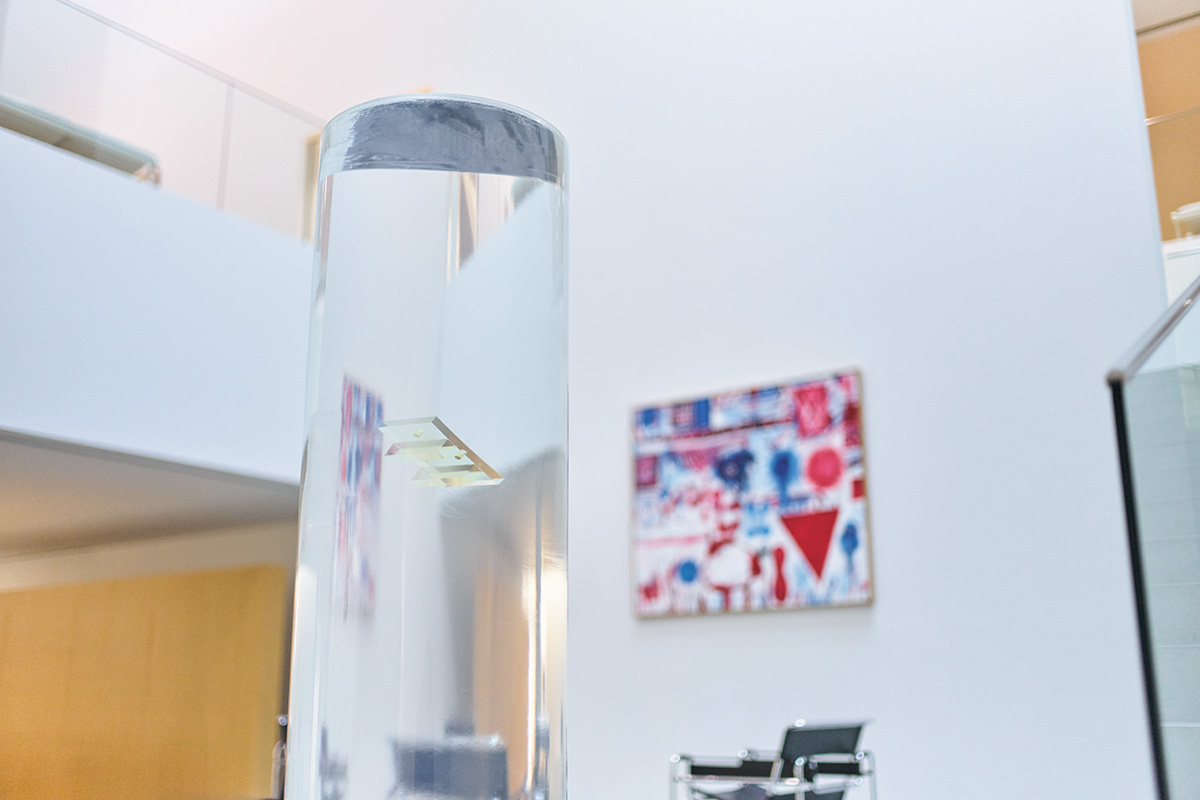 清澄な風景画を描く日本画の巨匠・東山魁夷の祖父が坂出市櫃石島の出身であることから、約300点の版画作品等の寄贈を受けて2005年に開館。櫃石島を正面に望むように建ち、天然石「バーモント・グリーン」を用いた外壁の建物は、瀬戸内海の風景と調和するように佇んでいる。階段でつながるふたつの展示室では、所蔵作品の一部を年4回のテーマ作品展で紹介。作品鑑賞後、1階ラウンジに突如として現れる静穏な景色に思わず息をのむ。ここに併設されたカフェで、魁夷の絵画の余韻にゆっくりと浸りたい。