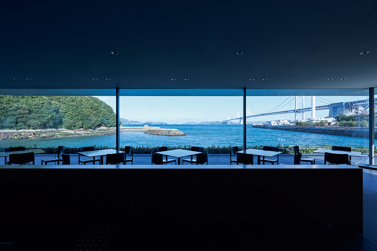 瀬戸大橋を望む坂出市沙弥島に建つ「香川県立東山魁夷せとうち美術館」も、吉生の建築だ。魁夷と吉郎の親交を通じ、その絵画を理解していた吉生。魁夷の代表作『道』を彷彿とさせるアプローチからはじまり、作品とじっくり向き合った後、階段を下りた先の1階ラウンジに広がる瀬戸内海の景色は、魁夷が描き続けた美しい風景への憧憬をかき立てる。