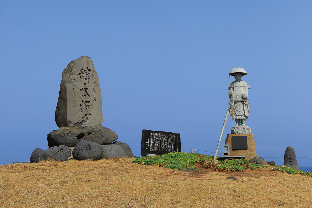 福江島の北西端にある三井楽半島には、弘法大師空海の遺した言葉「辞本涯」の記念碑が建つ。この半島は10世紀の文学作品『蜻蛉日記』で「亡き人に逢える島 〜みみらくのしま〜」と詠まれたように、「異国との境界の島」、「死者に会える西方浄土の島」として広く歌枕となった。