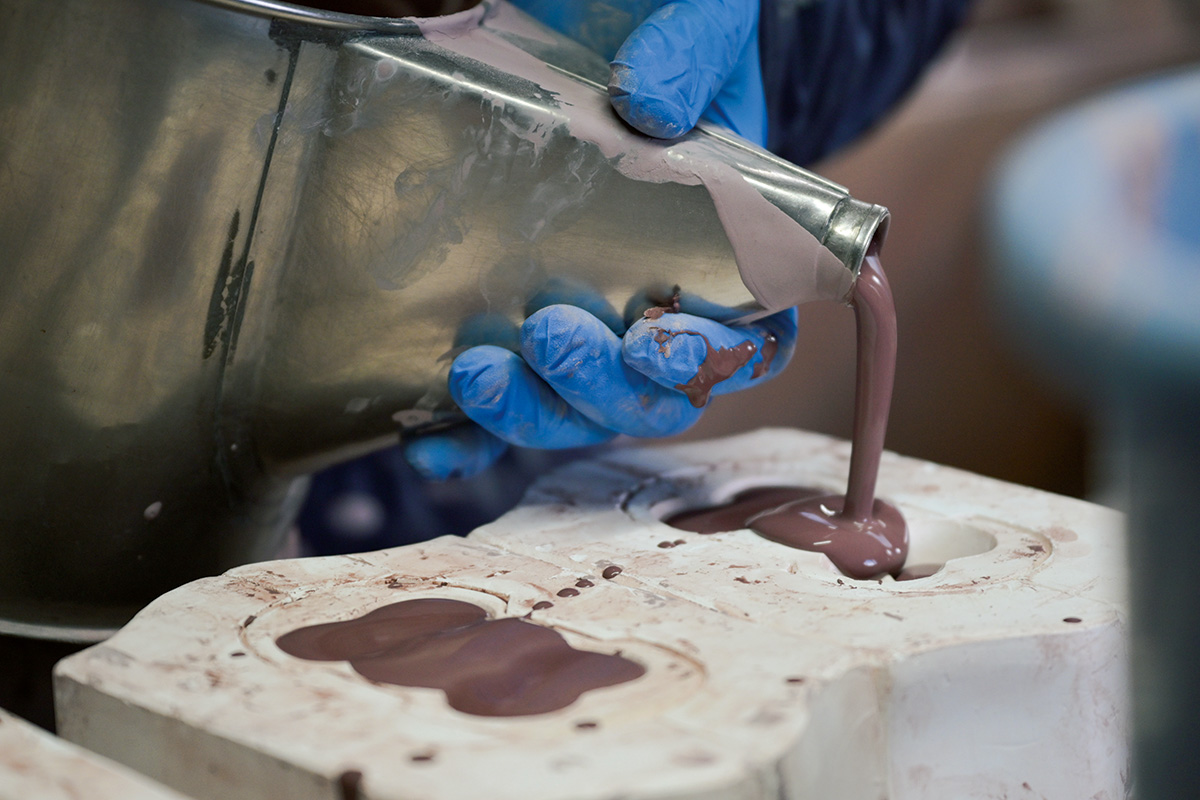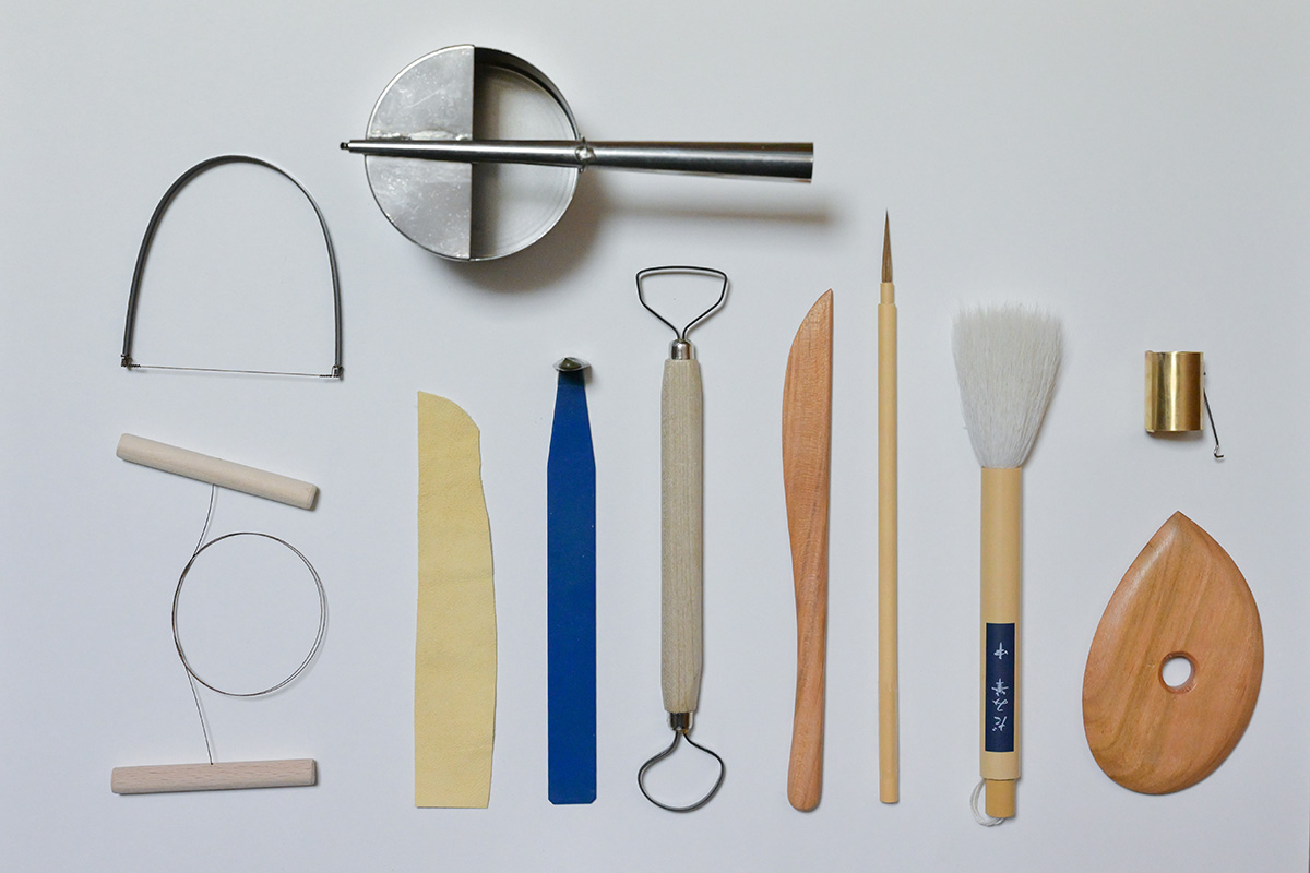 瀬戸焼は多彩な製法で成形する。上の写真は粘土を水に溶かした「泥漿(でいしょう)」を石膏型に流し込んで成形する鋳込み製法だ。全国に顧客をもつ「村上金物店」では、成形に使うろくろやヘラをはじめ1000種類以上の陶芸道具を扱う。