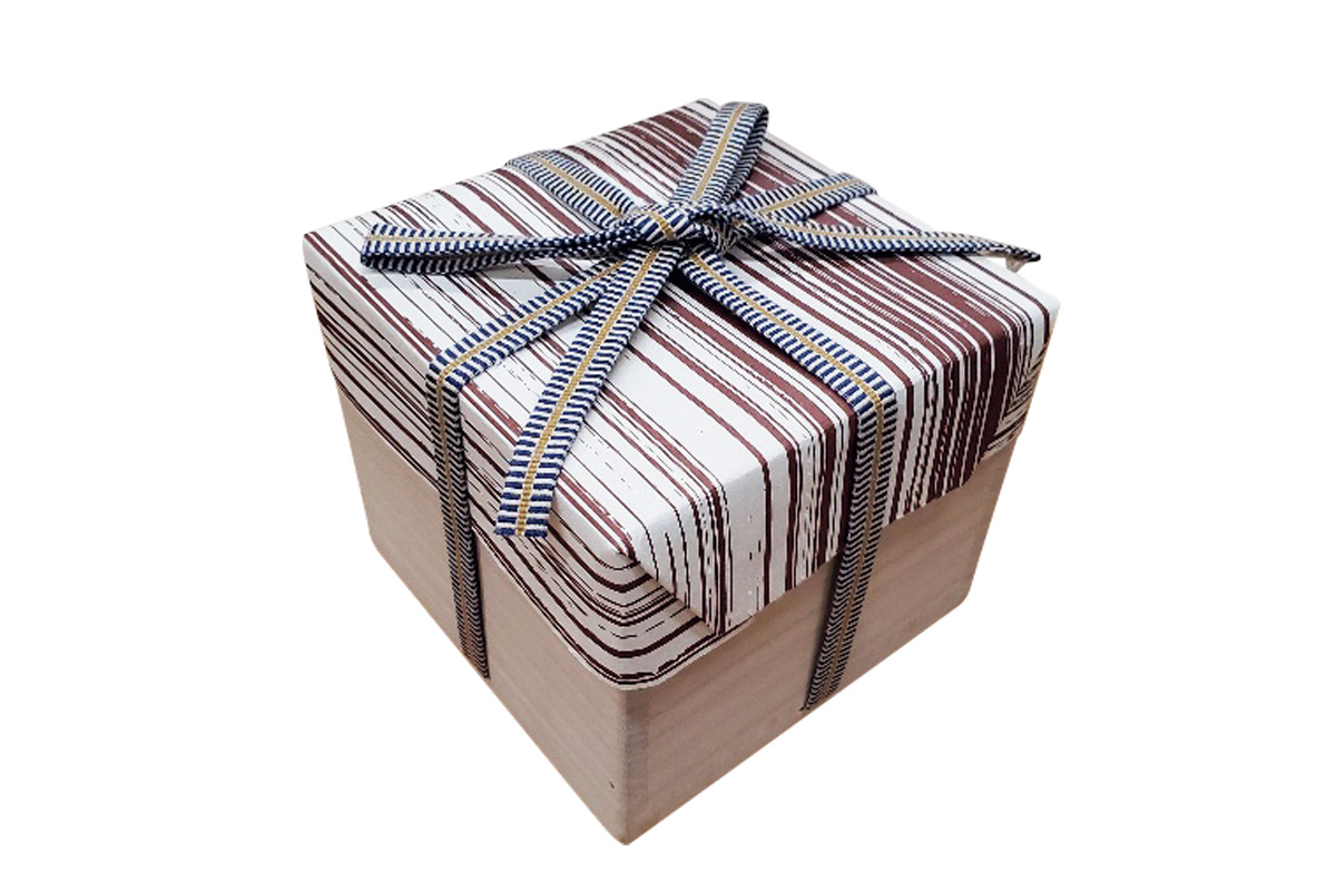 上等な焼物はひも付きの木箱に納めて届けられる。窯元も信頼を寄せる「マツバラ」では、個々のうつわや注文主の希望に応じて桐・杉・モミなどの木を選び、一つひとつ手づくりしている。唐三郎窯もマツバラの木箱を長年愛用している。