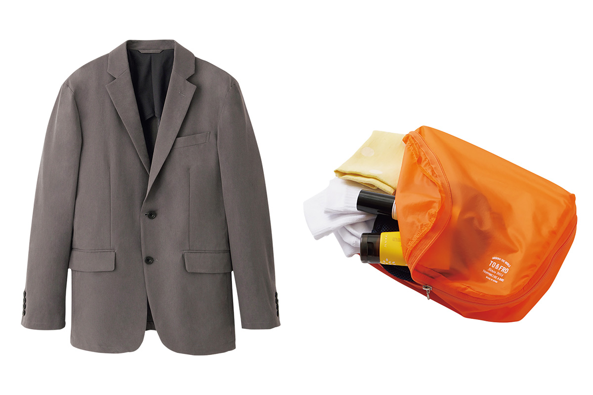 左)K-3Bのエアロコンフォーム テーラードジャケット(5万4450円)。繊維が熱を吸収 ・放出する素材を使用
