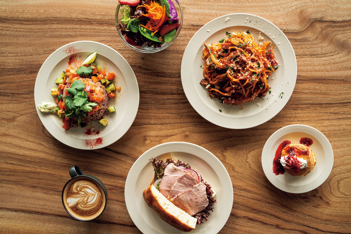 パーク内にある直営レストラン「79 KITCHEN」。KAJIFが自前の糸でストーリーをもって生地を織るのと同様、「誰が、どこで、どんな想いで、どのように生産しているか」を大切にし、石川をはじめとする北陸の生産者から直送された食材を使う。