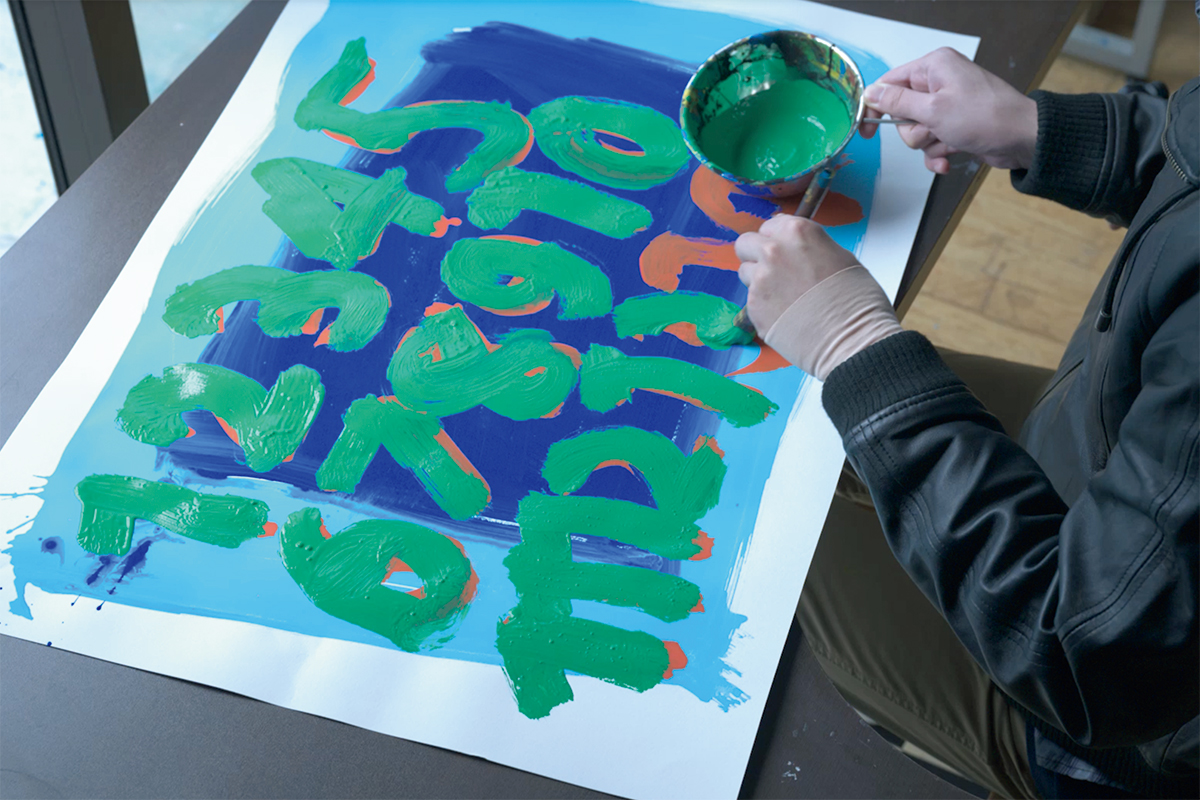 12歳から創作活動を続けている契約作家のmarina氏。びっしりと描き連ねる独自のタイポグラフィは想像力をかき立てる。「TOKYO FASHION CROSSING」では堂々とした姿でランウェイも歩いた