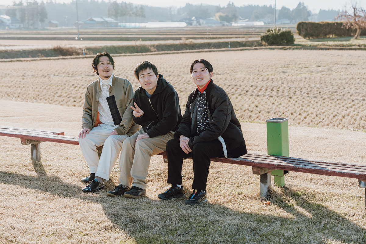 右から文登さん、翔太さん、崇弥さん。 地元・岩手で撮影した写真だ。国内外問わず、プレゼンテーションの場や授賞式に翔太さんがへラルボニーの“真の創業者”として参加する機会も多い