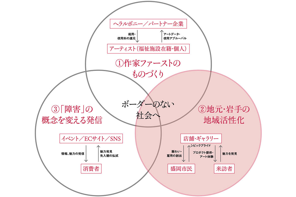 世界が熱視線を送る岩手・盛岡発のクリエイティブカンパニー「へラルボニー」。異彩を放つ作家とともにつくる福祉×アート×ビジネスを起点とした事業展開で、既存領域の枠を越えた新しい価値を創出している。中編ではヘラルボニーのビジネスモデルや事業展開についてご紹介。