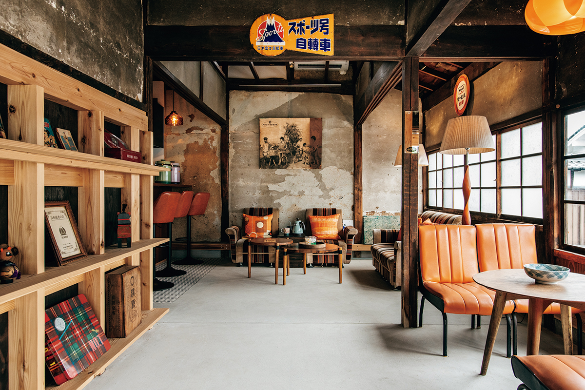 自転車好きにはたまらない、愛車とともに泊まれる宿。サイクリストでない人は、レンタサイクルでサイクリングも満喫できる。元自転車店の面影を残す、昭和レトロな雰囲気も必見