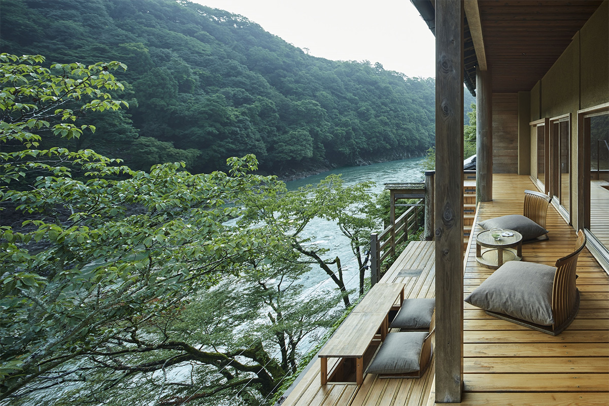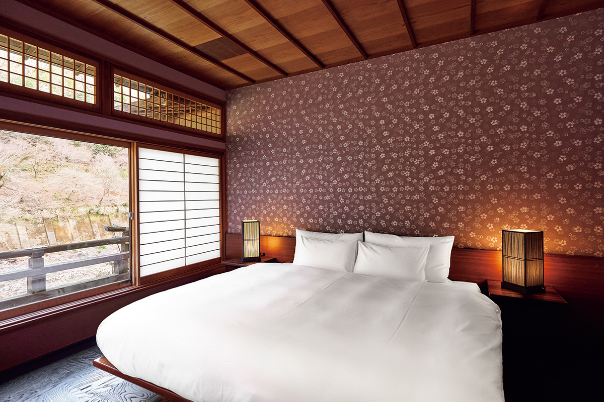 京都・嵐山の大堰川沿いに佇み、季節の移ろいを鮮やかに感じる「星のや京都」。圧倒的な非日常の寛ぎに加え、ここでしか味わえない食体験が注目されている。後編では、客室や体験など滞在の魅力についてご紹介していく。